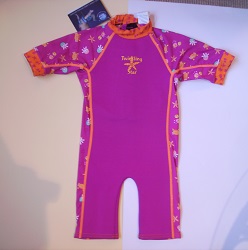 Firma "Splashabout", Grösse 2-4 Jahre , Rückenlänge von Hals bis Schritt ca. 43 cm, Umfang unter den Achseln ca. 54 cm.