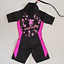 Pink-schwarzer Neoprenanzug mit Feen-Motiv und Stehkragen in den Grössen