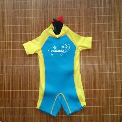 Neoprenanzug für Kleinkinder aus 1 mm Neopren, schützt auch vor Wind und Sonne mit UV-Schutz 50! Klettverschluss auf der Rückseite für einfaches An- und Ausziehen des Bodys. Modell mit Lyraärmeln und kurzem Lycrakragen sowie Lycra-Seitenbereiche, dadurch bequem und elastisch.