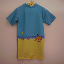 Farbe Neopren türkis mit Motiv Krabbe, gelbe Bündchen und Nähte,