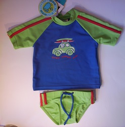 Farbe grün-royalblau mit Surfauto. Grösse 0, ca. 10 kg, 12 Monate, Länge 76 cm.