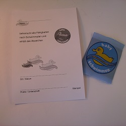 Stoffabzeichen mit Ente für Babyschwimmer, ca. 5 cm, Urkunde zum Ausfüllen,