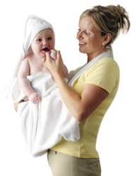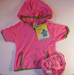 Innovatives Kapuzenbadetuch für Mutter (Vater) und Kind, mit Applikation auf der Kapuze. Man hat die Hände frei und wird selbst nicht nass, nach dem Babyschwimmen kann man sich selbst einschlagen, solange man das Kind anzieht.