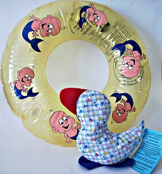 Der gelbe Schwimmreifen mit Quellenmännchenmotiv hat einen Außendurchmesser aufgeblasen 40 cm, flach gemessen 42 cm, Innendurchmesser aufgeblasen 16 cm. Er passt Babys im Alter von ca. 3 - 8 Monaten, phthalatfrei.