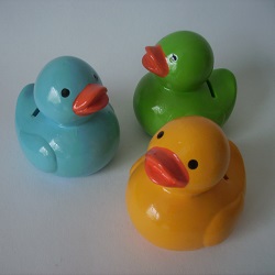 6 Geburtstagskerzen in Form von kleinen Enten,
