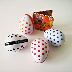 Die Eier erzeugen beim Schütteln ein rhythmisches Rasselgeräusch und liegen gut in kleinen Kinderhänden.