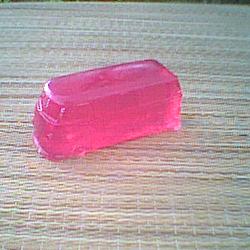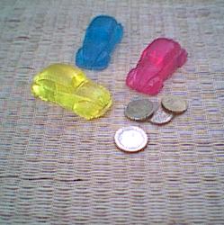 Seife ca. 30 g, Farben transparent klar, hellblau, rosarot, gelb.