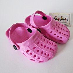 Kinderclogs mit Riemen, aus superleichtem EVA-Material, praktisch für Garten, Freibad und Strand. Auch als Hausschuh zu verwenden, Firma Playshoes. Farbe frei wählbar aus rosa,dunkelblau, hellblau und rot,