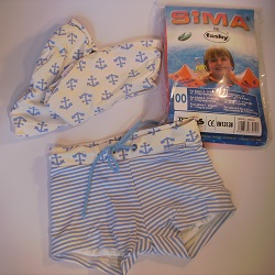 Combi Set "kleiner Matrose", bestehend aus Badehose mit passenden "Wetpets" (Stoffumhüllungen für Schwimmflügel), Gewinner der Innovation Award, Messe Kind und Jugend 2009,