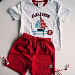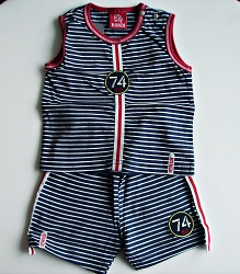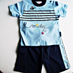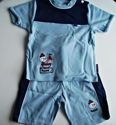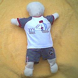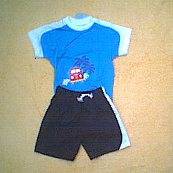 Anzug mit T-Shirt und kurzer Hose, Material 100 % Baumwolle. Hose mit Gummizug. Größen: 74, 80, 86 (bitte angeben)