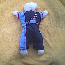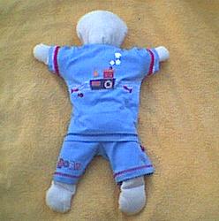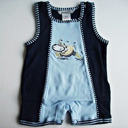 Der Strampler ist aus 100 % Baumwolle, waschbar bei 40° C, Farbe marine-weiß mit Motiv auf der Vorderseite: drei Bären in Booten sitzend, Größen 50 oder 56, Größe bitte angeben!