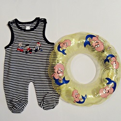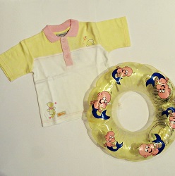 Der gelbe Schwimmreifen mit Quellenmännchenmotiv hat einen Außendurchmesser aufgeblasen 40 cm, flach gemessen 42 cm, Innendurchmesser aufgeblasen 16 cm. Er passt Babys im Alter von ca. 3 - 8 Monaten, phthalatfrei.
