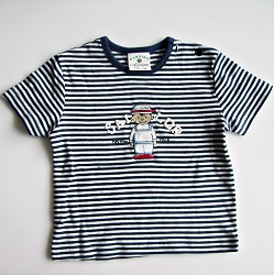 T-Shirt mit kurzem Ãrmel aus 100 % Baumwolle, waschbar bei 40° C, Farbe marine-weiß-gestreift, Motiv auf der Vorderseite: Sailor on the Ship, Größen 68, 74, 80 und 86.