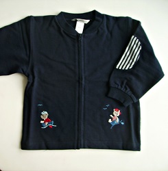 Farbe marine-weiß mit Motiv auf der Vorderseite: drei Bären in Booten sitzend, Größen 50 oder 56,